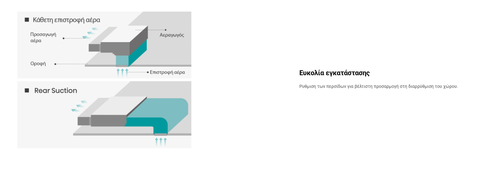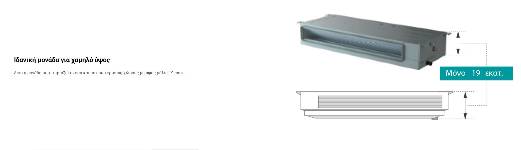 Η προηγμένη τεχνολογία DC Inverter μειώνει σημαντικά την κατανάλωση ενέργειας, διατηρώντας σταθερή θερμοκρασία και υψηλά επίπεδα άνεσης. Η υψηλή στατική πίεση της μονάδας επιτρέπει την κάλυψη μεγάλων αποστάσεων και την εξυπηρέτηση πολλαπλών χώρων από μία μονάδα.